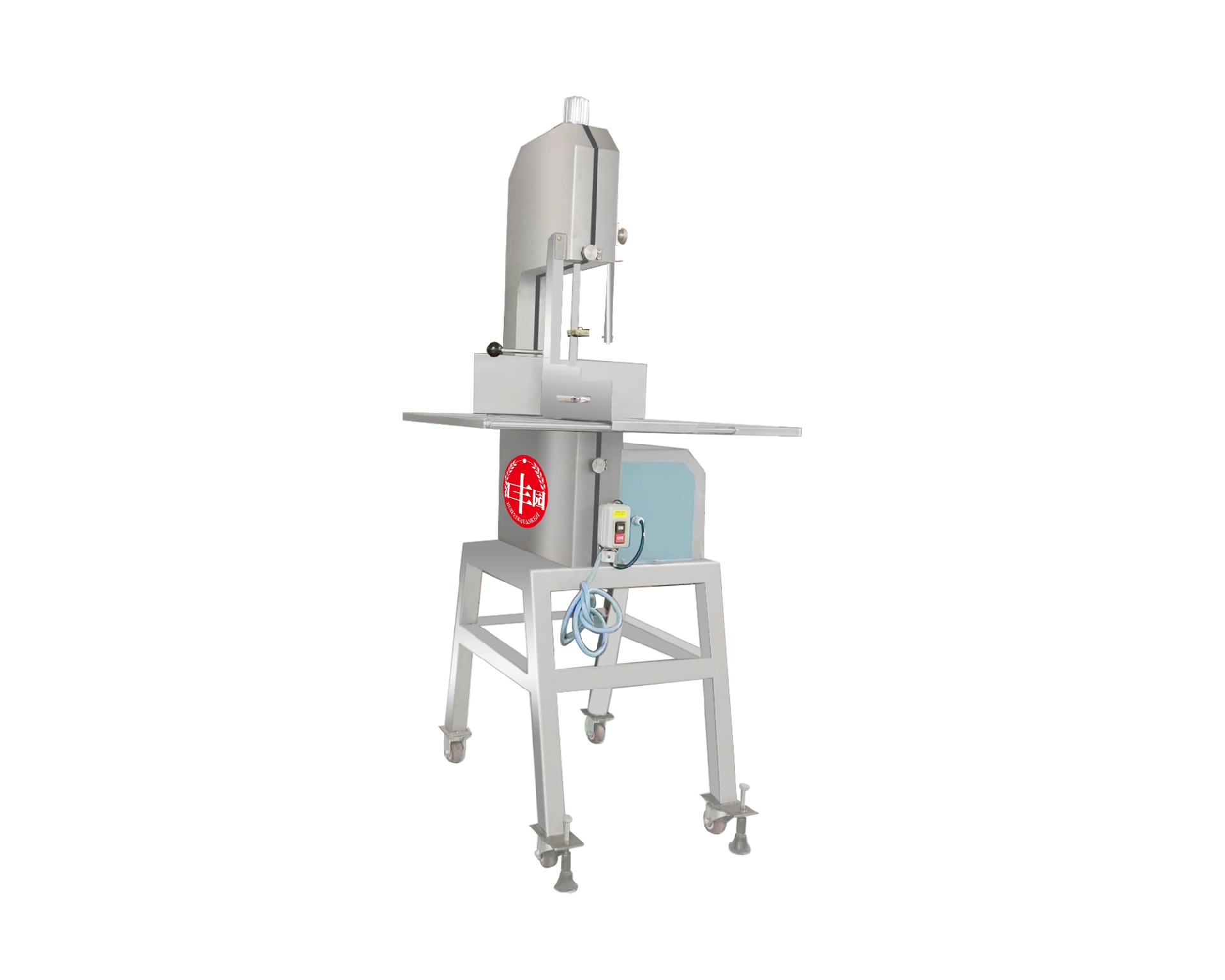 平面式機(jī)身設(shè)計(jì), 不銹鋼封板, 符合食品衛(wèi)生并易于清洗;不銹剛機(jī)門, 表面特殊處理, 容易清理及保養(yǎng);鋸帶壓力張緊裝置, 便于鋸帶安裝及調(diào)整;鋸帶穩(wěn)定裝置, 鋸切時(shí)鋸帶穩(wěn)定不會游走 .厚度調(diào)整板加強(qiáng)設(shè)計(jì), 便于調(diào)節(jié)加工厚度, 移動(dòng)時(shí)不會搖動(dòng). 適用適用于各類中小型動(dòng)物骨頭、冷凍肉,帶魚骨,冷凍魚,冰塊的加工等。用于小塊凍肉、排骨的切割。適用于大型集中式食品加工廠、屠宰場、肉聯(lián)加等地使用。